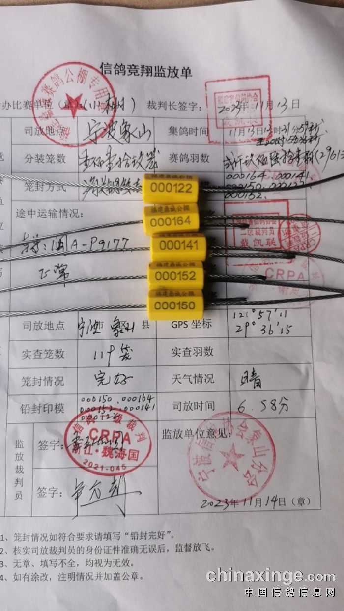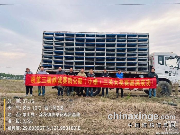 福建鼎诚赛鸽公棚【小棚】2023年第三关490KM(宁波站)决赛已于11月14日上午6点58分开笼,司放地浙江宁波,司放地经纬度:经度 121度,57分,26.40秒 , 纬度 29度,36分,4.94秒 ,司放地天气晴,赛鸽走势良好,预祝广大鸽友取得好成绩!