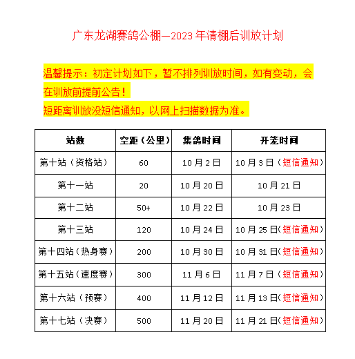 2023广东龙湖赛鸽公棚--训放计划17