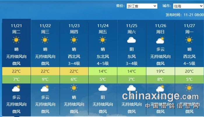 第三关临海站(390KM)比赛沿途天气参考: