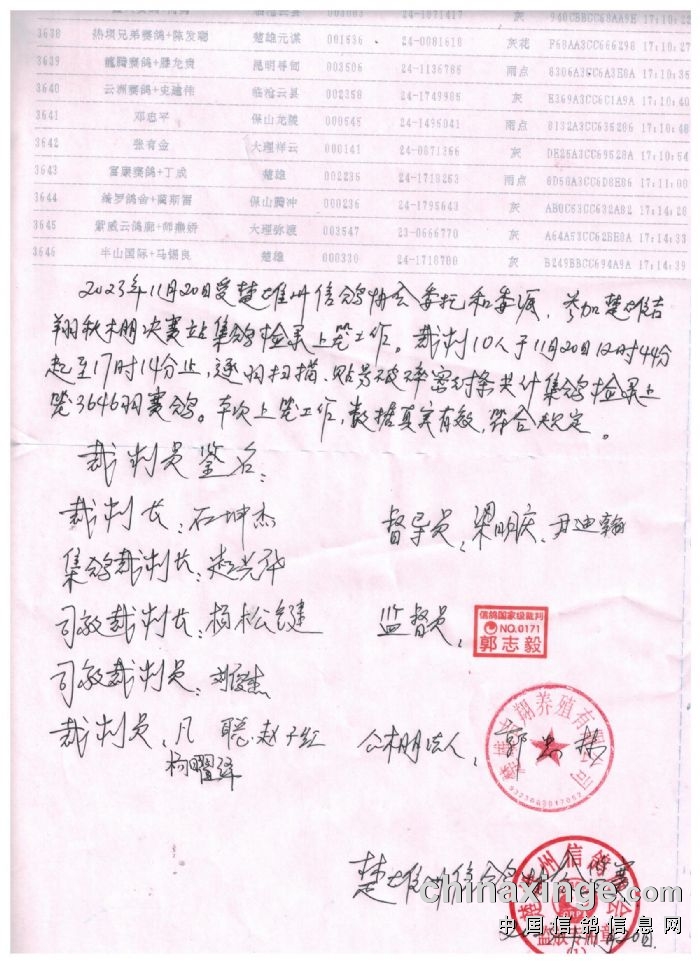 楚雄吉翔秋棚近期晚归鸽名单(第三批)