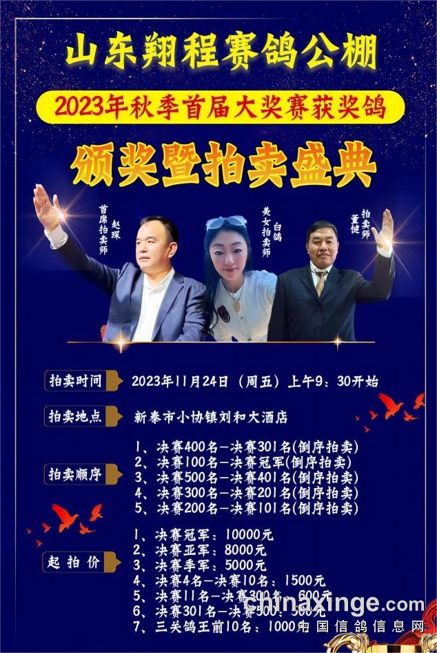 | 山东翔程赛鸽公棚2023年首届拍卖会公告