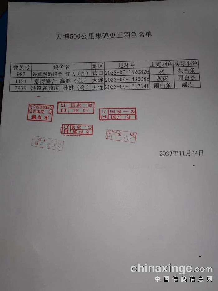 辽宁省大石桥万博公棚180公里单羽赛获奖名单