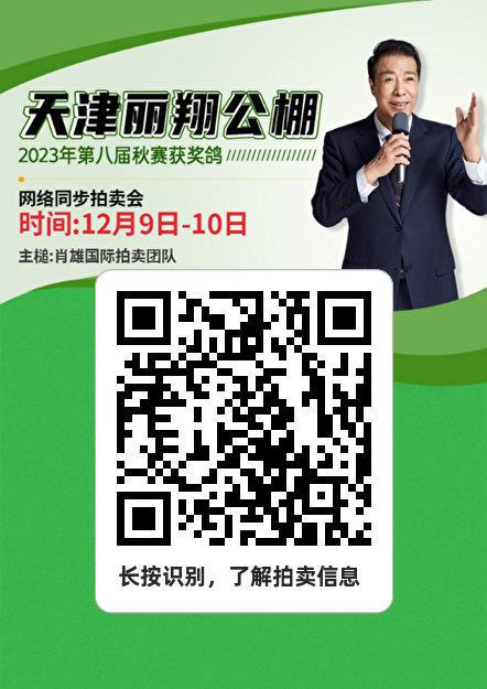 2023年秋赛已圆满结束,在此天津丽翔赛鸽公棚向广大鸽友致以诚挚的问候并感谢广大鸽友对天津丽翔赛鸽公棚的支持与信赖。现本棚定于12月9、10日颁奖及拍卖,欢迎您的莅临。同时开通网络拍卖,鸽友可以在家中观看和参与拍卖鸽活动!