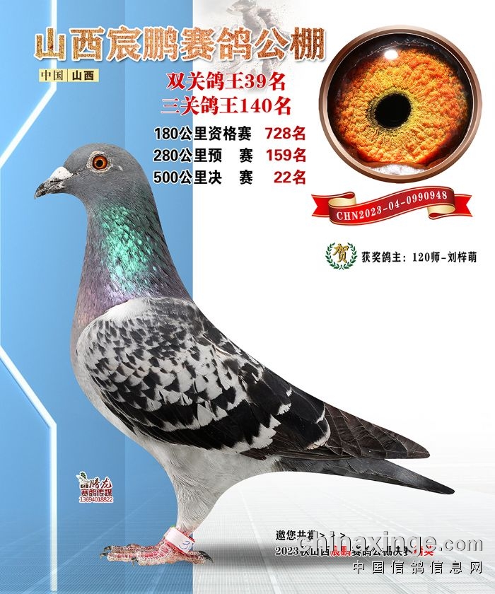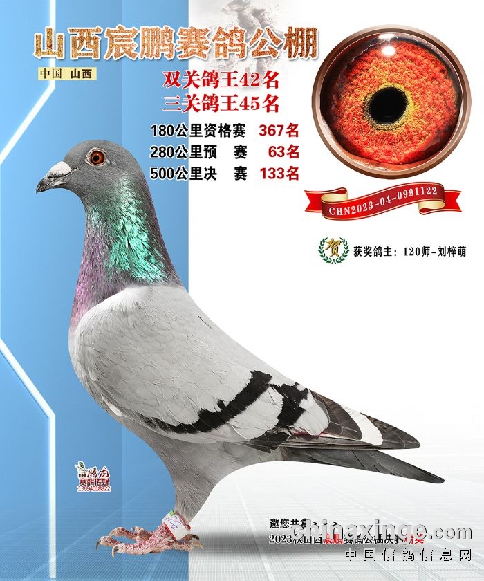 山西宸鹏:2023年获奖鸽图片鉴赏36名-42名