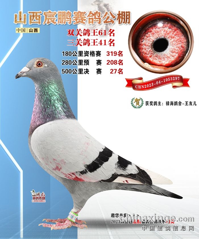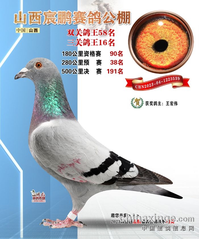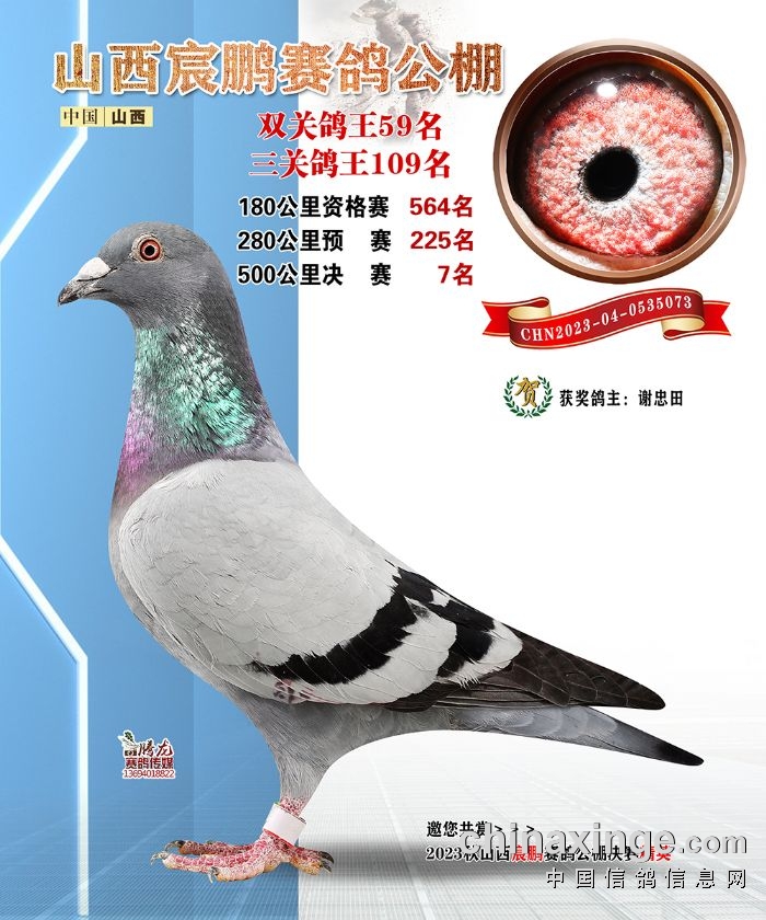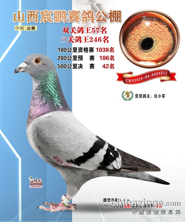 山西宸鹏:2023年获奖鸽图片鉴赏57名-63名