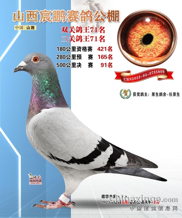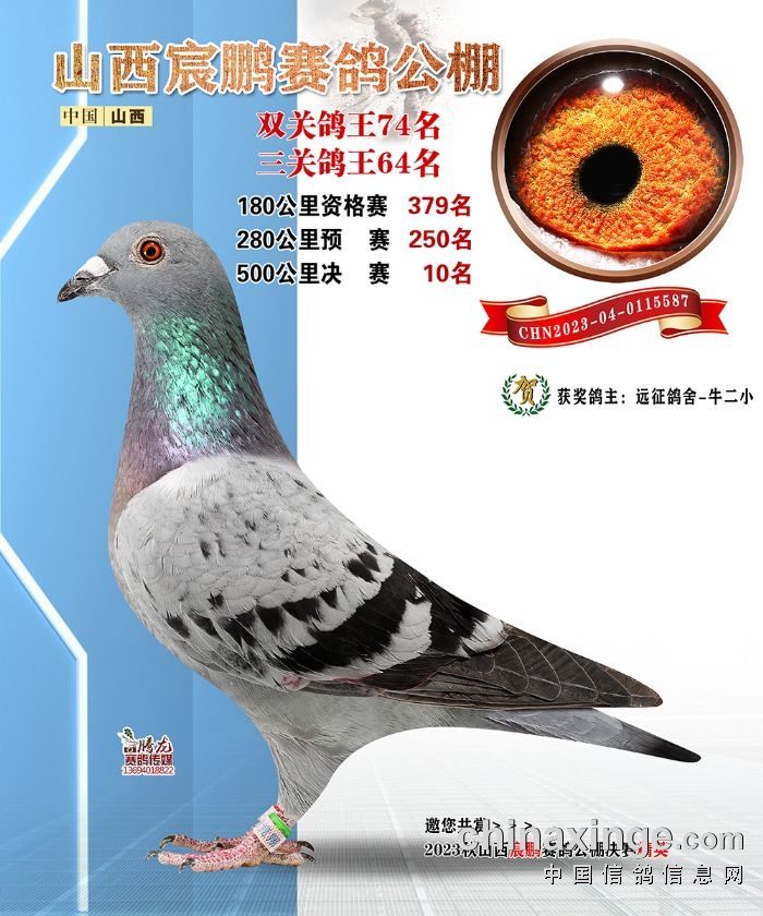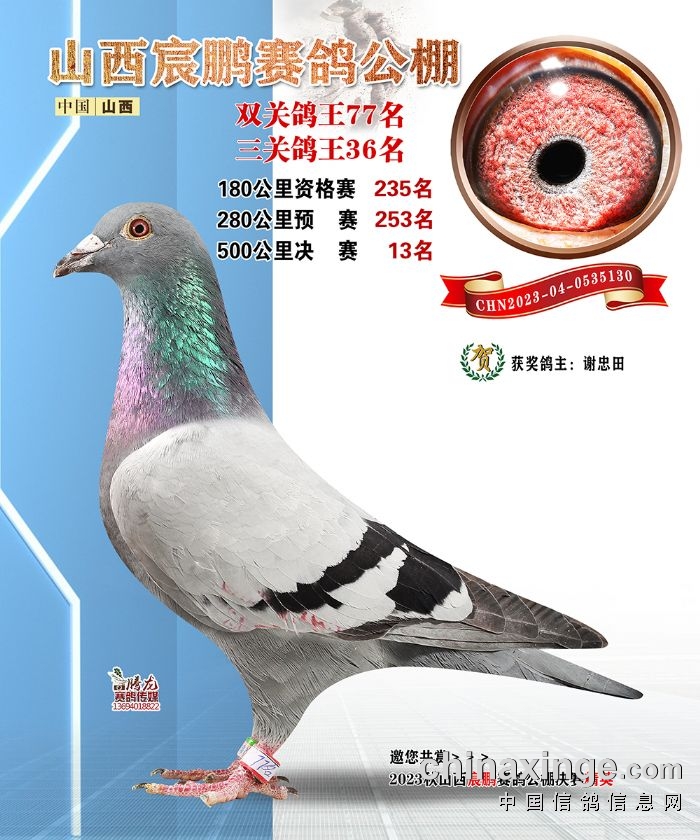 山西宸鹏:2023年获奖鸽图片鉴赏71名-77名
