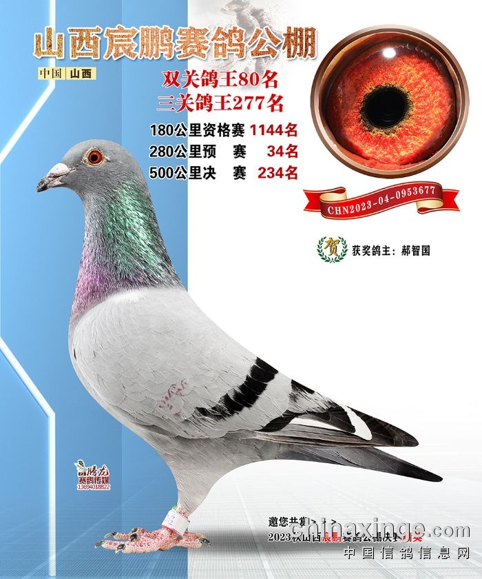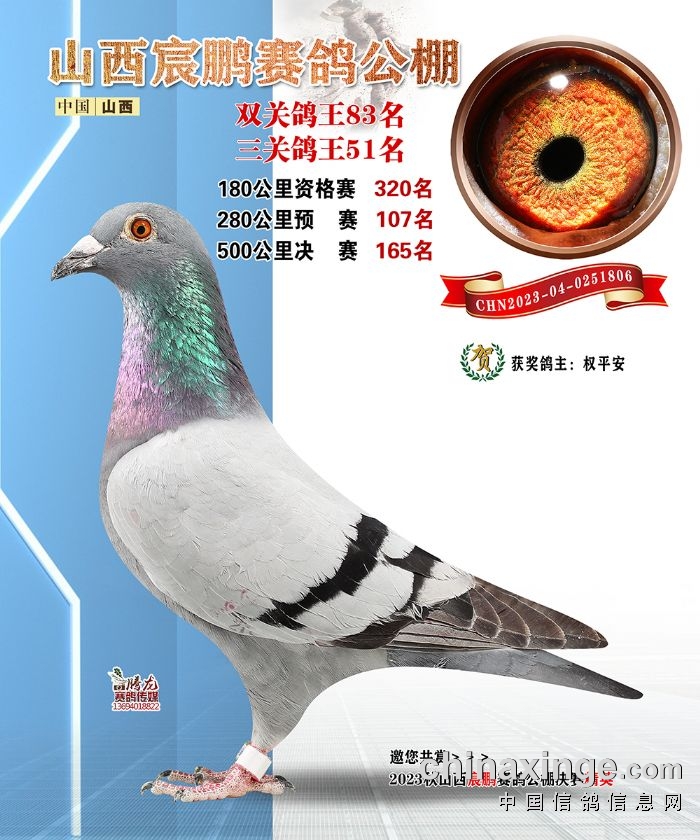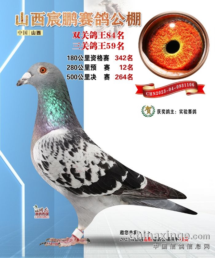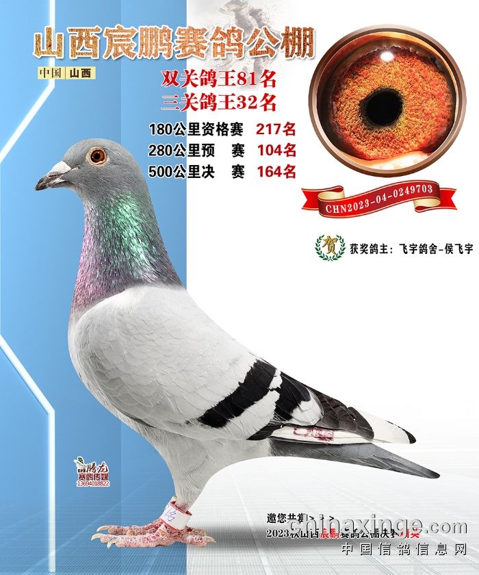 山西宸鹏:2023年获奖鸽图片鉴赏78名-84名