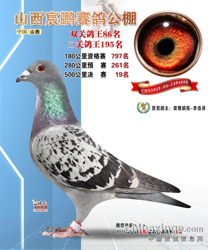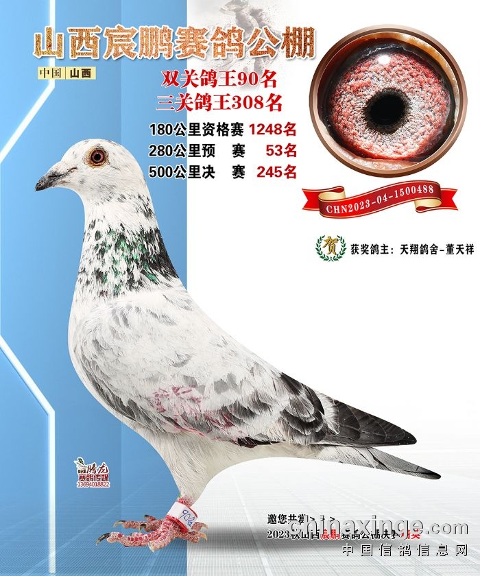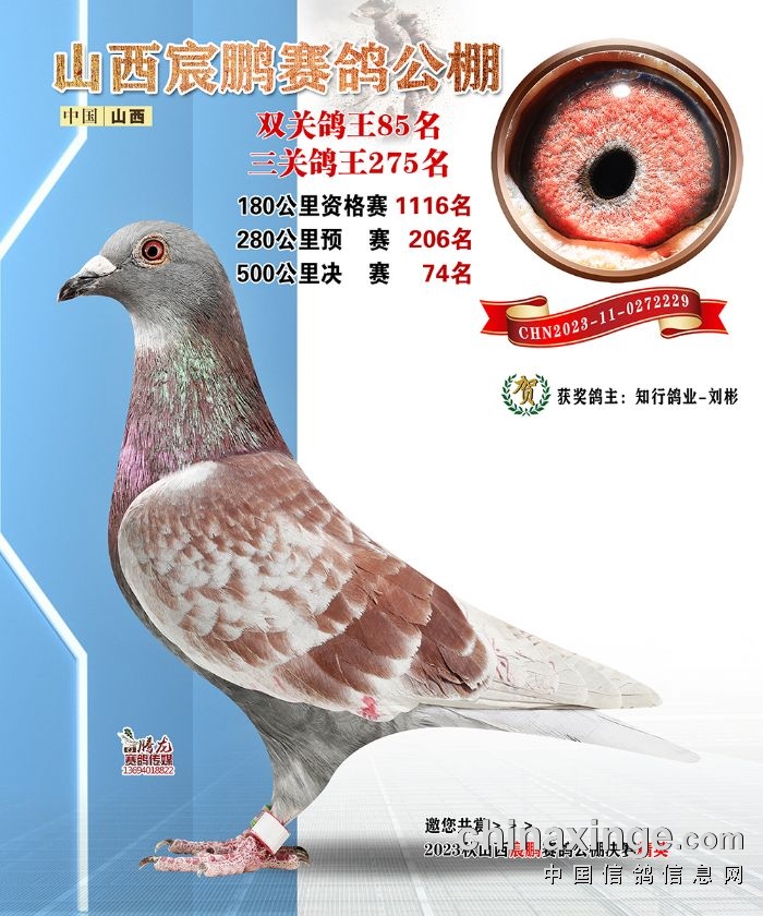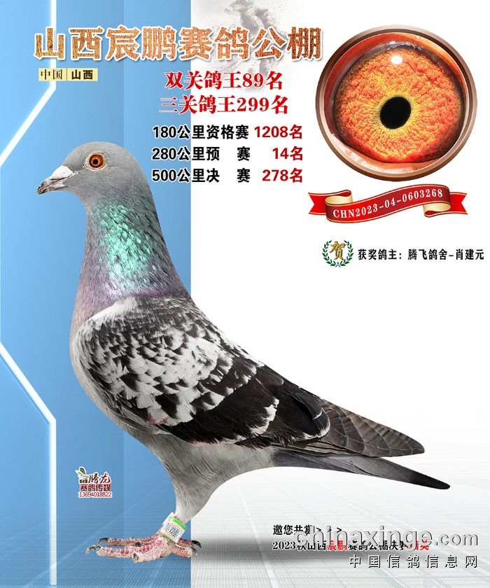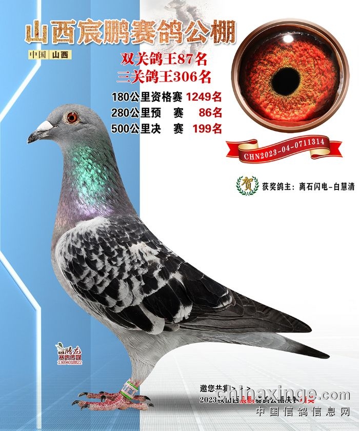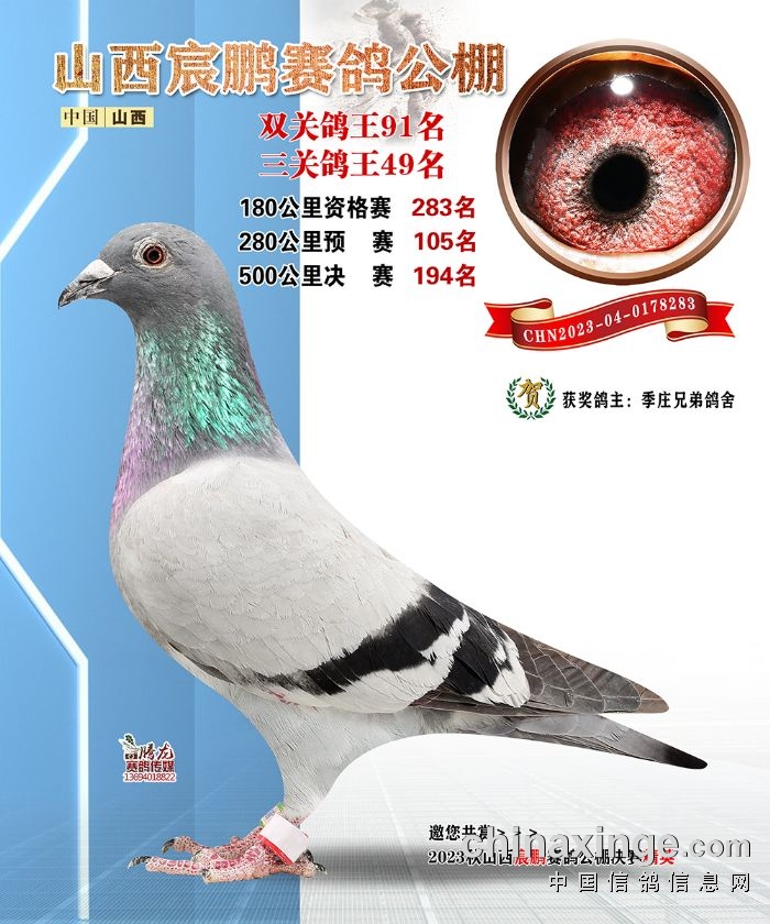 山西宸鹏:2023年获奖鸽图片鉴赏85名-91名