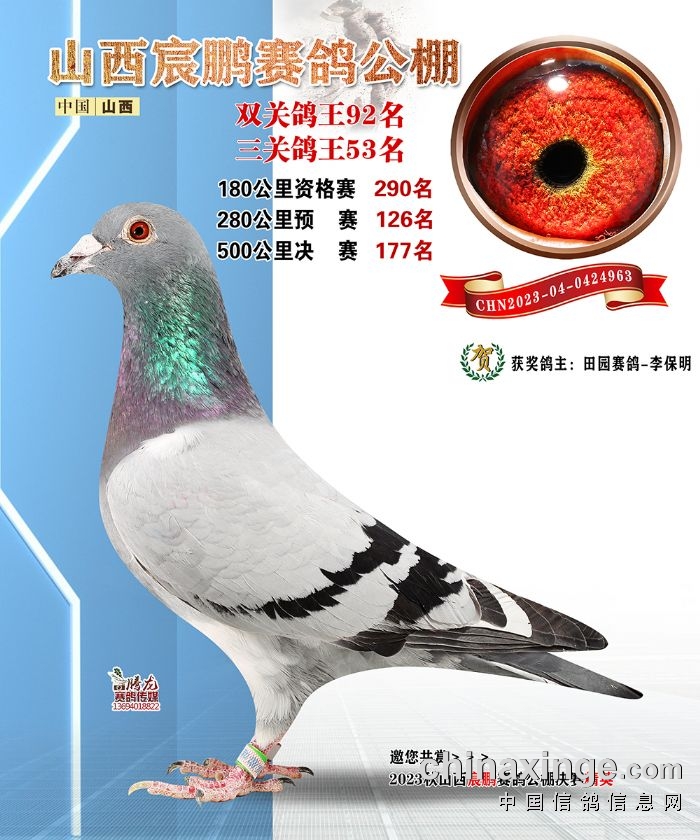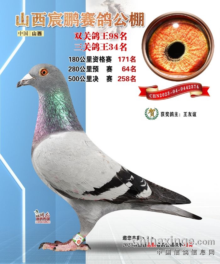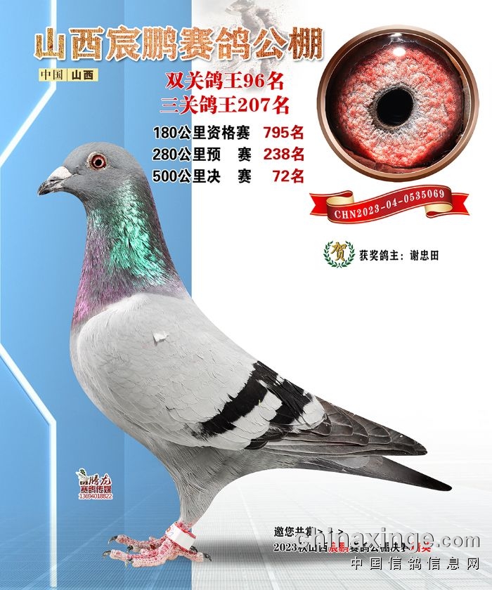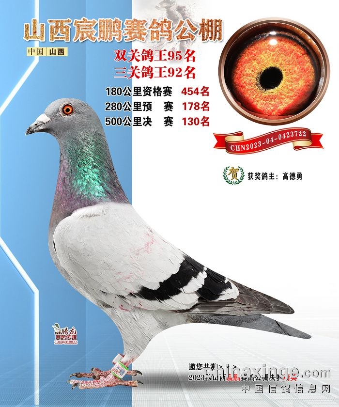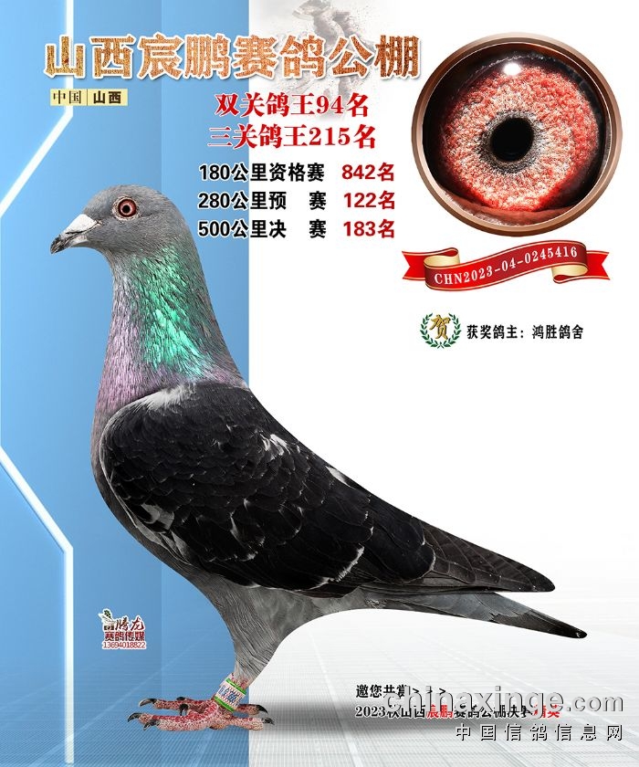 山西宸鹏:2023年获奖鸽图片鉴赏92名-98名