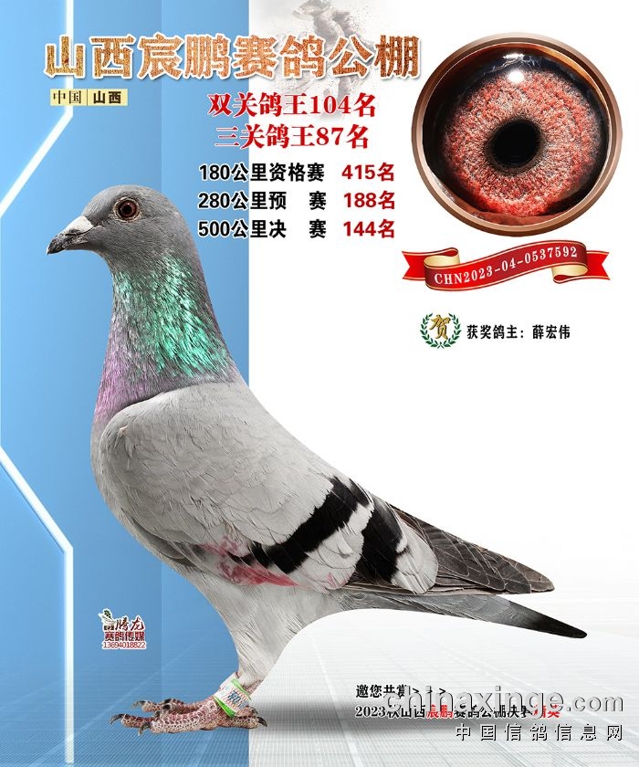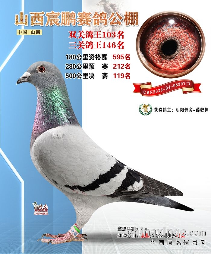 山西宸鹏:2023年获奖鸽图片鉴赏99名-105名