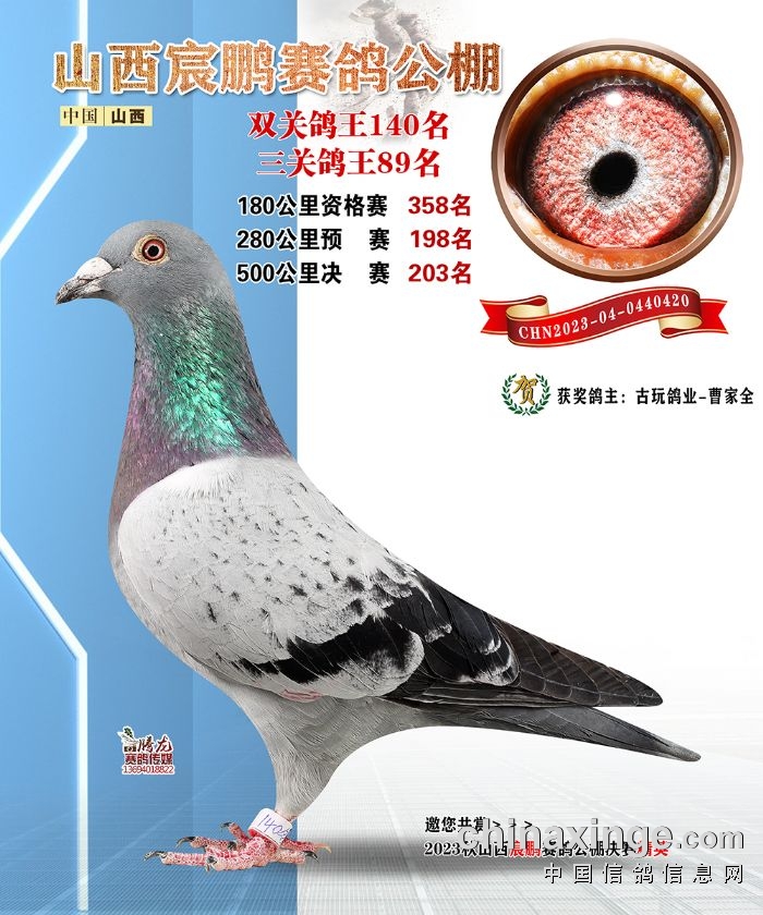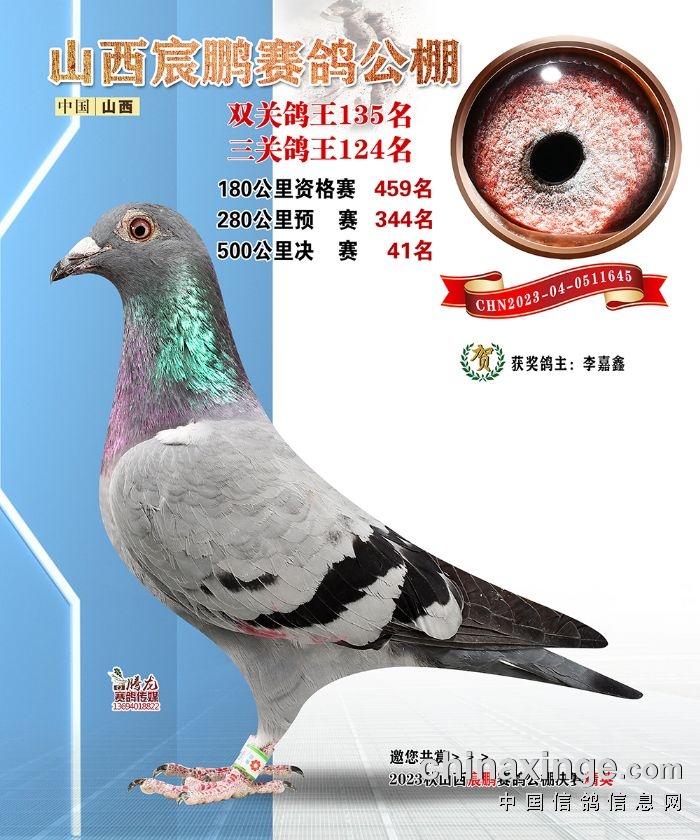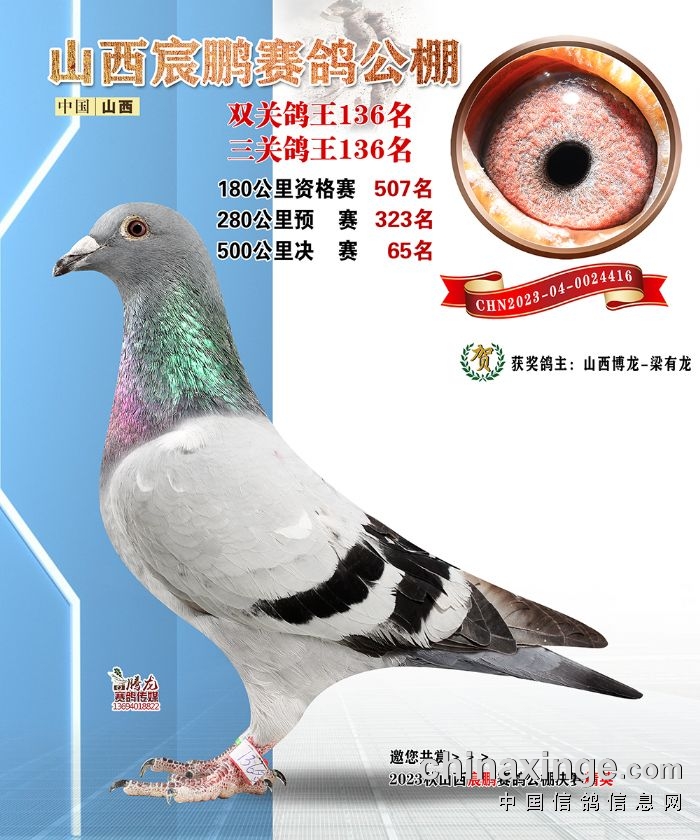 山西宸鹏:2023年获奖鸽图片鉴赏134名-140名