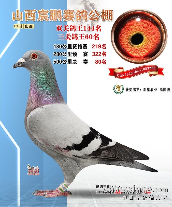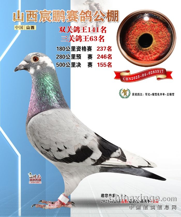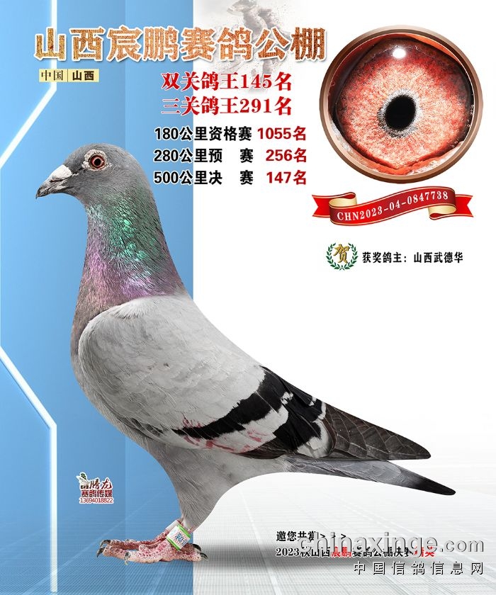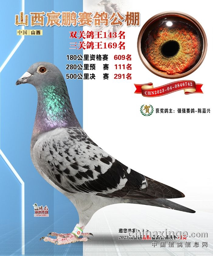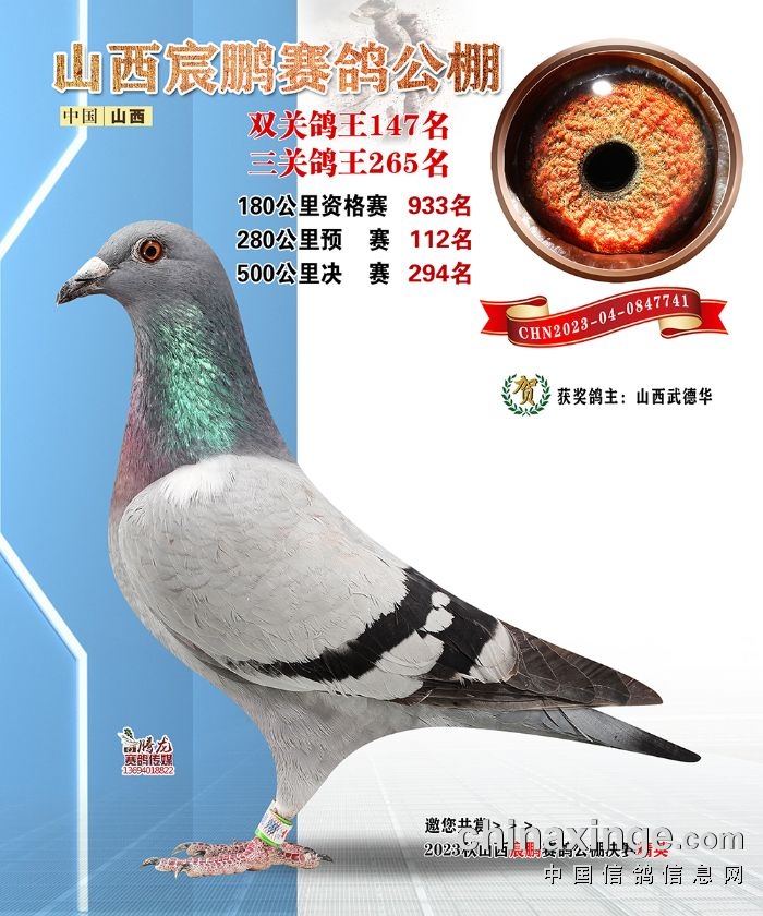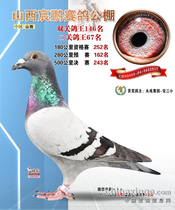 山西宸鹏:2023年获奖鸽图片鉴赏141名-147名