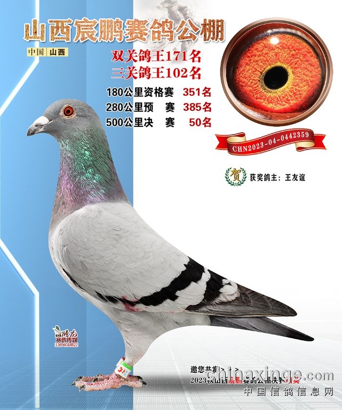山西宸鹏:2023年获奖鸽图片鉴赏169名-175名