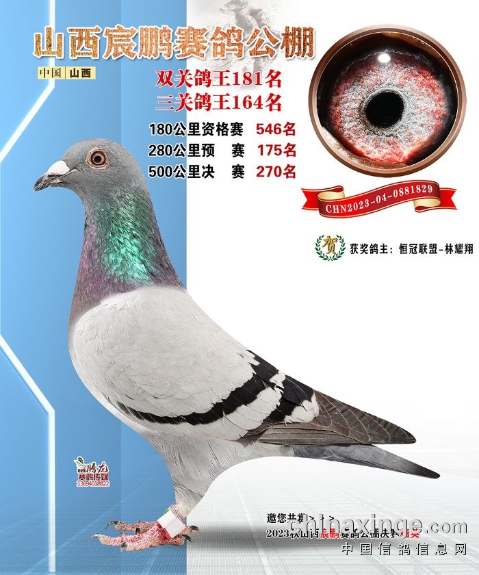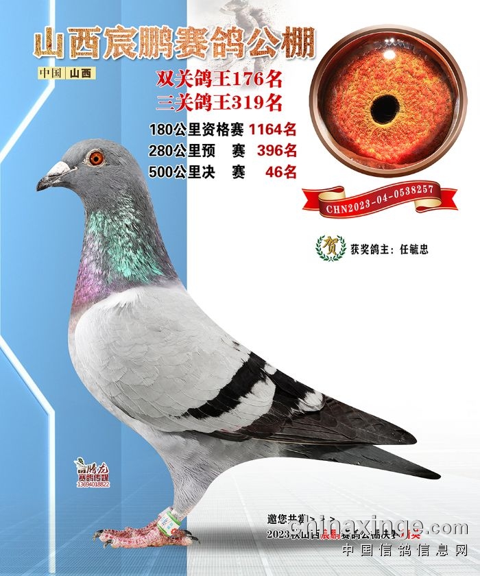 山西宸鹏:2023年获奖鸽图片鉴赏176名-182名