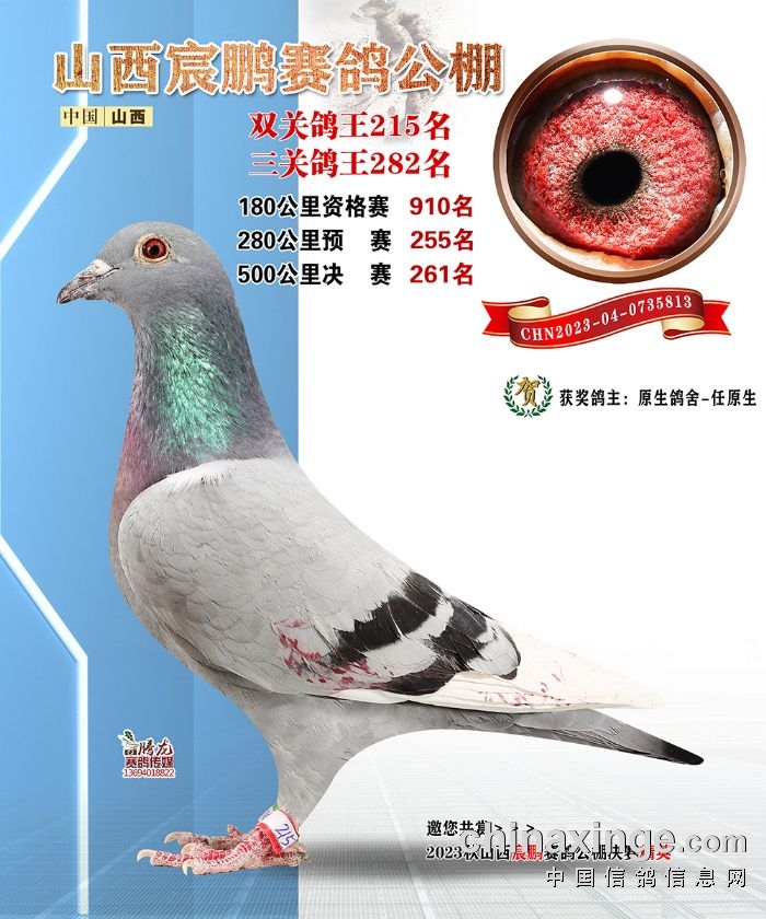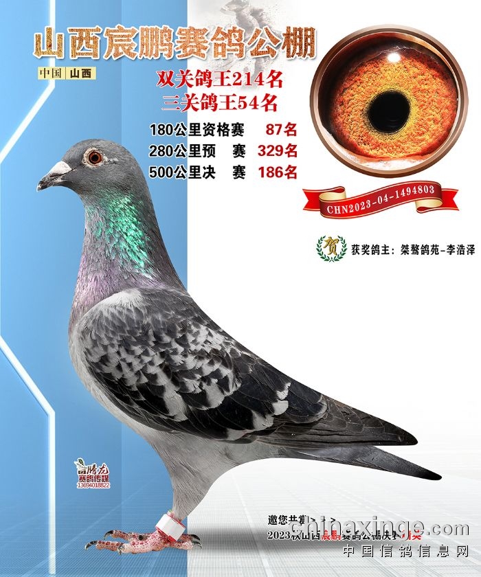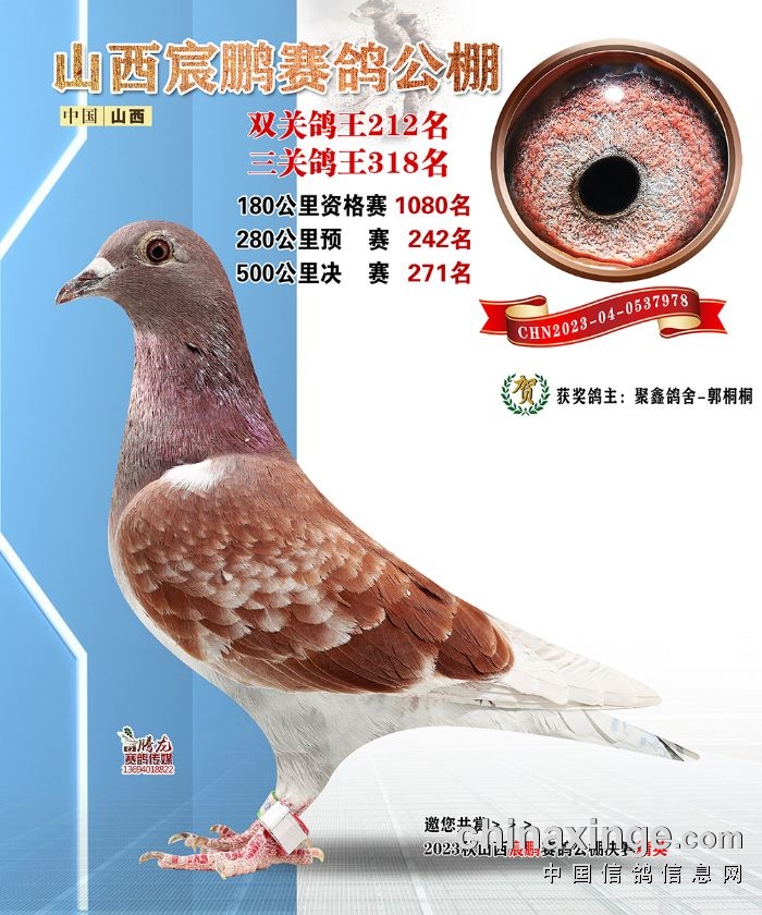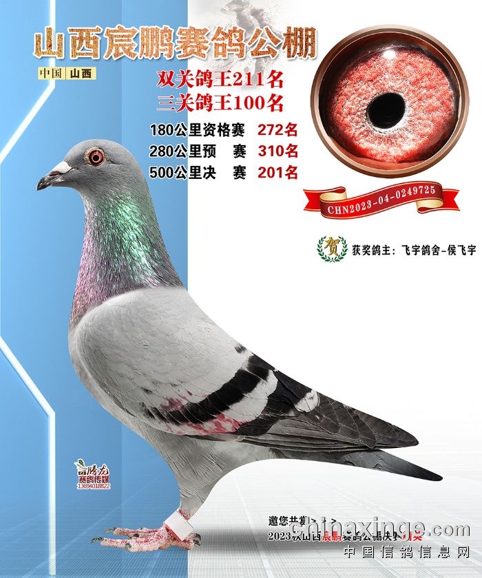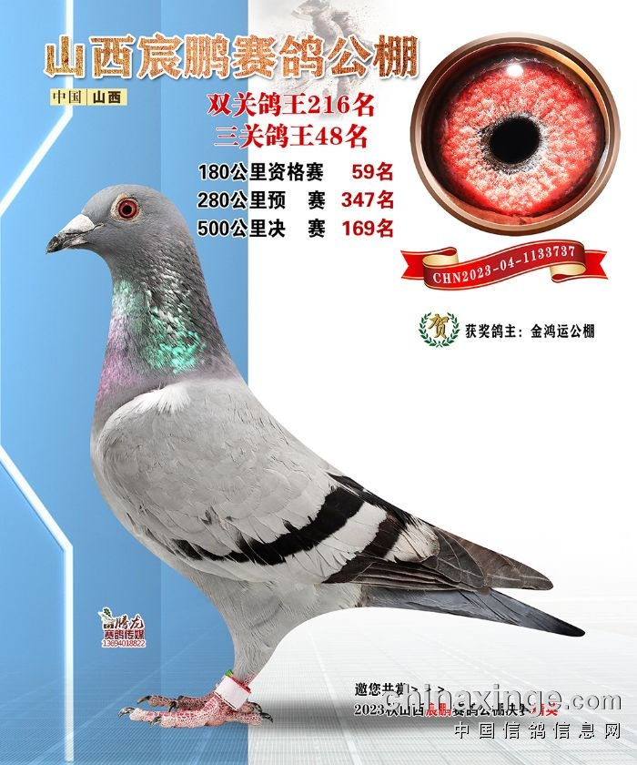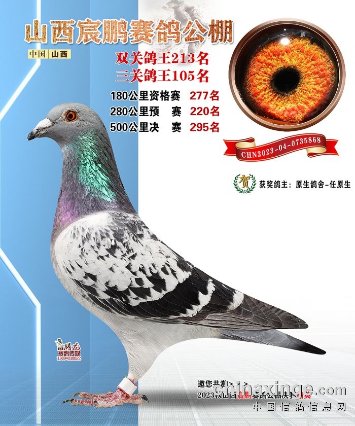 山西宸鹏:2023年获奖鸽图片鉴赏211名-217名