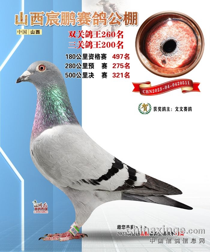 山西宸鹏:2023年获奖鸽图片鉴赏260名-266名