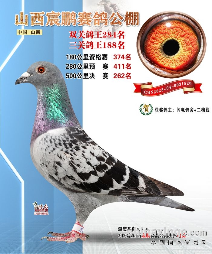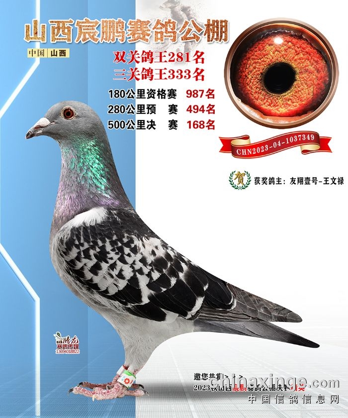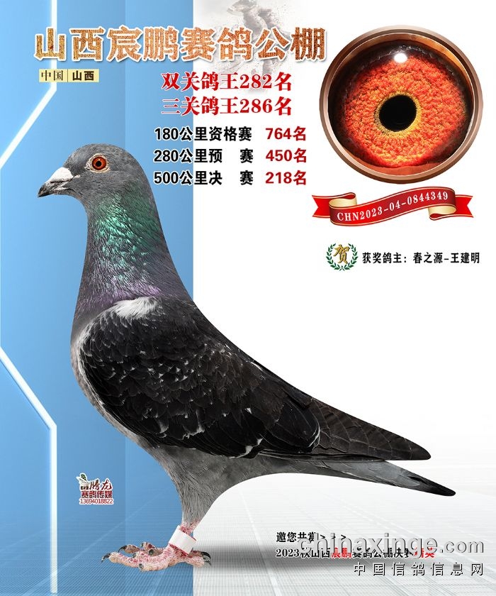 山西宸鹏:2023年获奖鸽图片鉴赏281名-287名