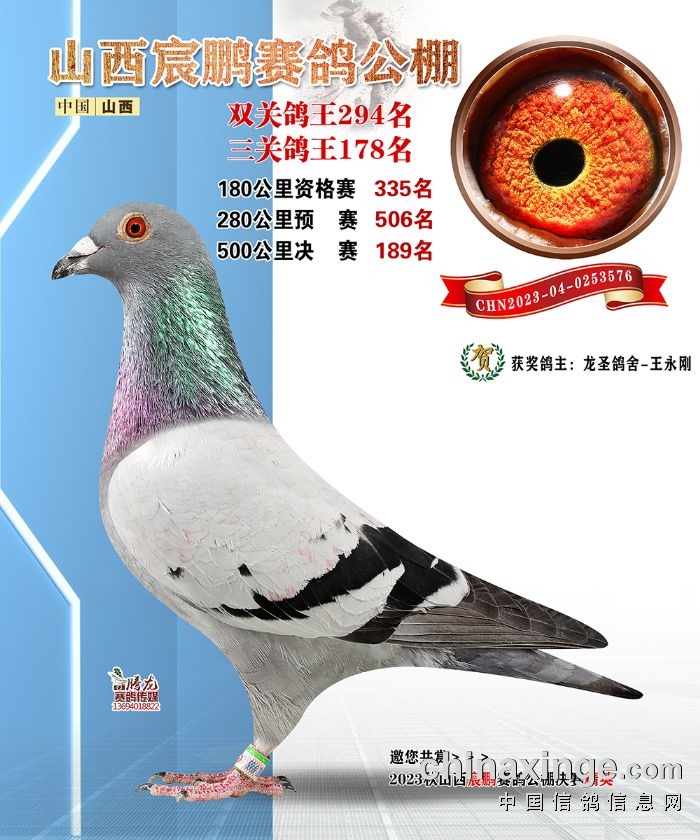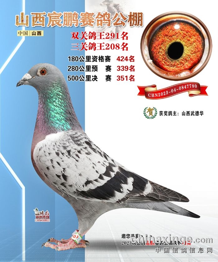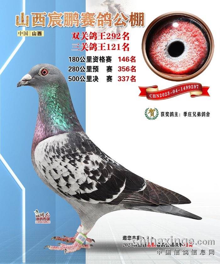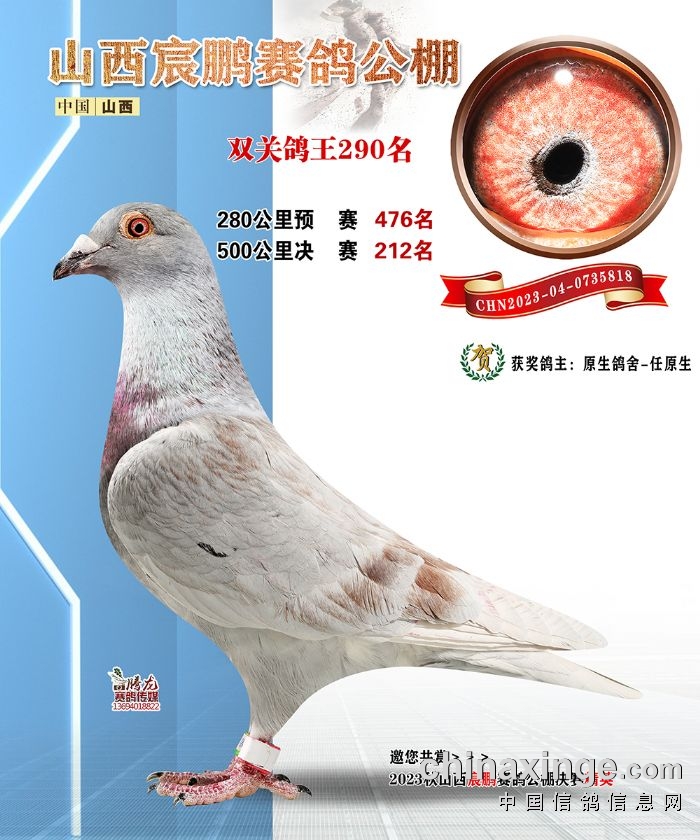 山西宸鹏:2023年获奖鸽图片鉴赏288名-294名