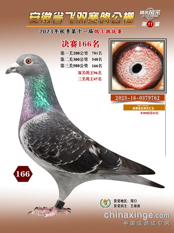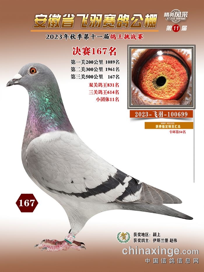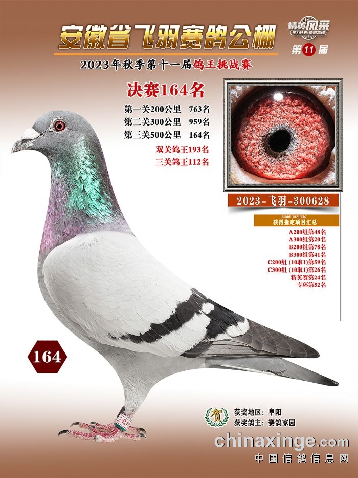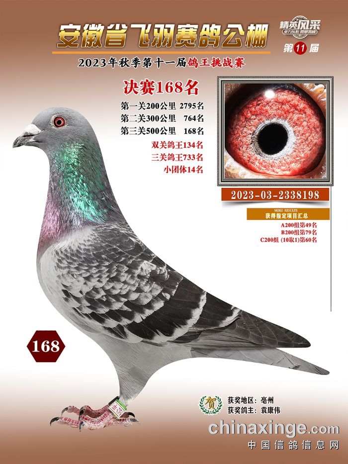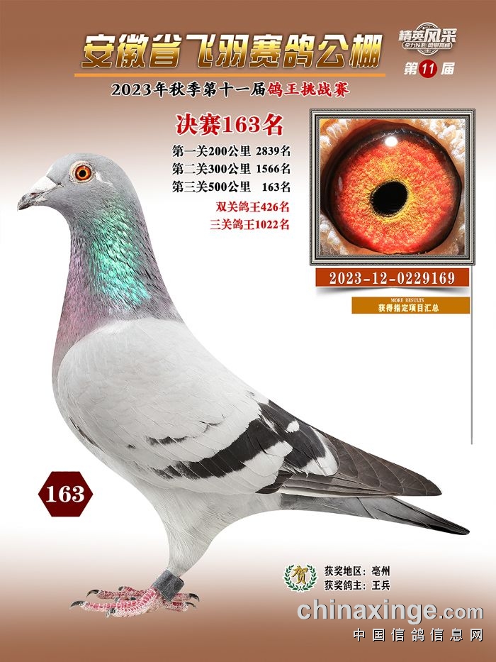 安徽飞羽公棚:2023年获奖鸽图片鉴赏162名-168名