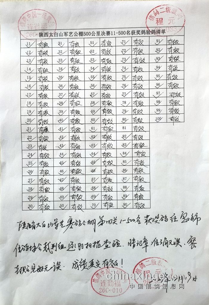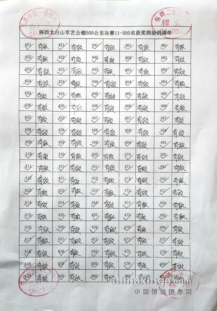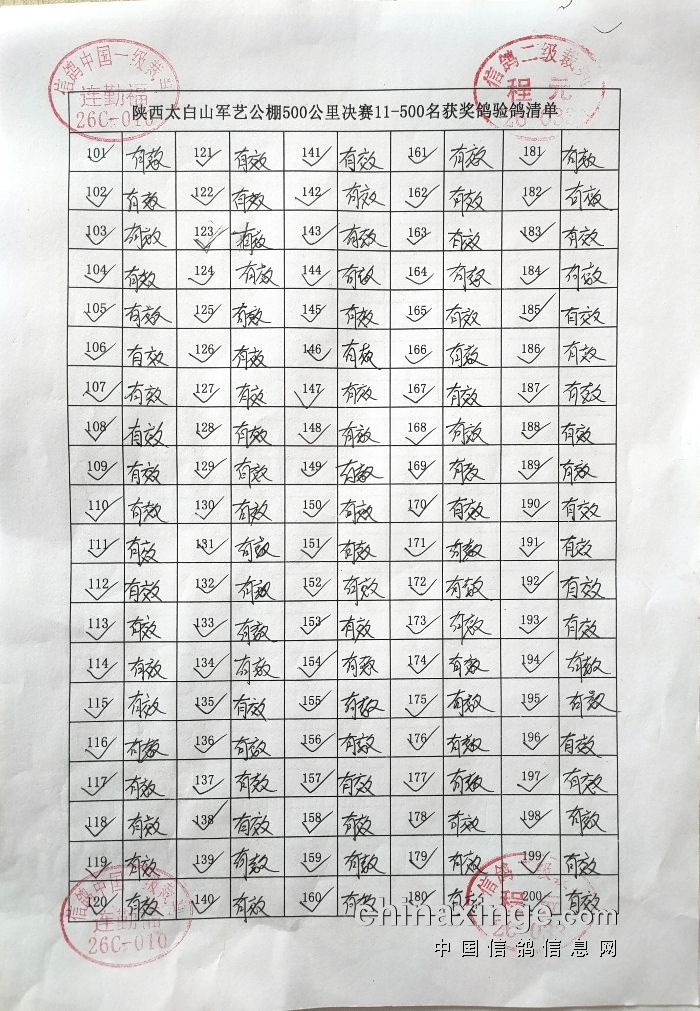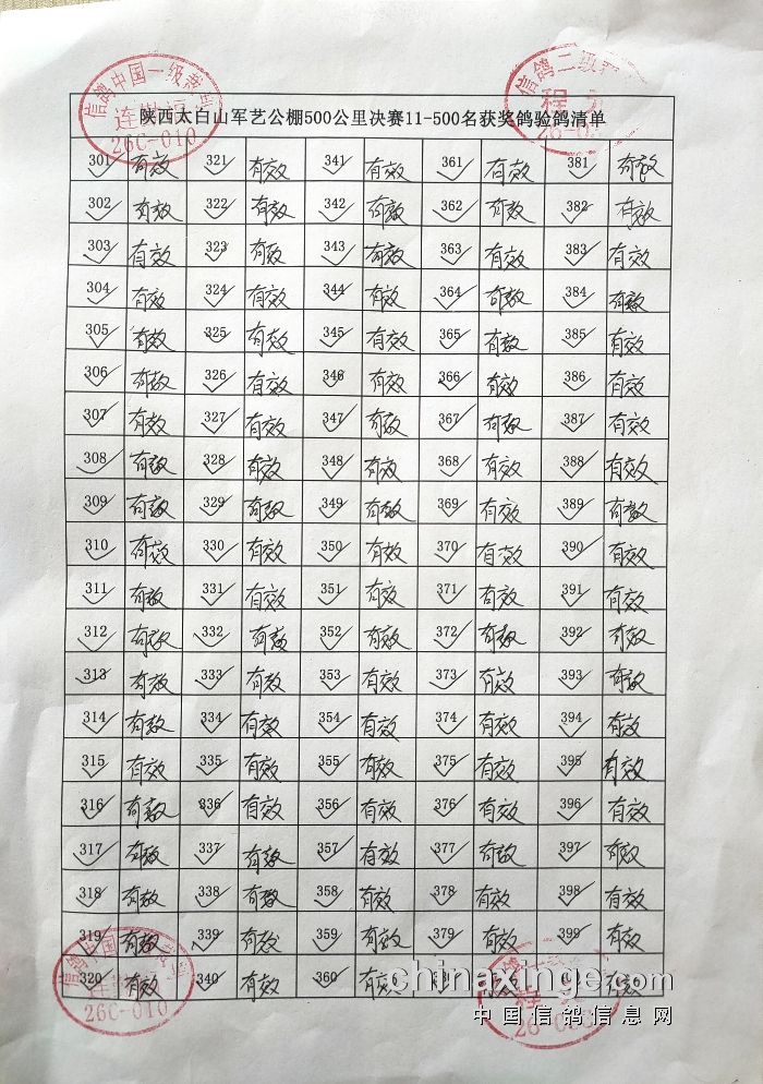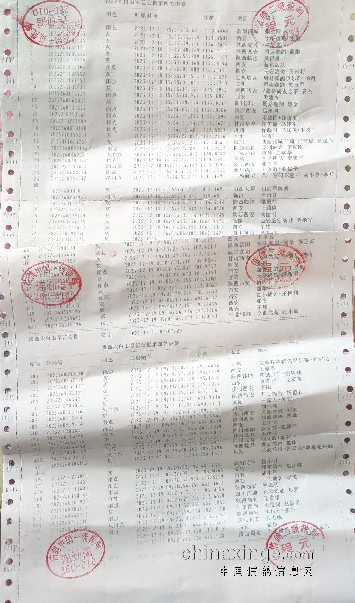 陕西太白山军艺公棚第四关决赛获奖鸽验棚清单