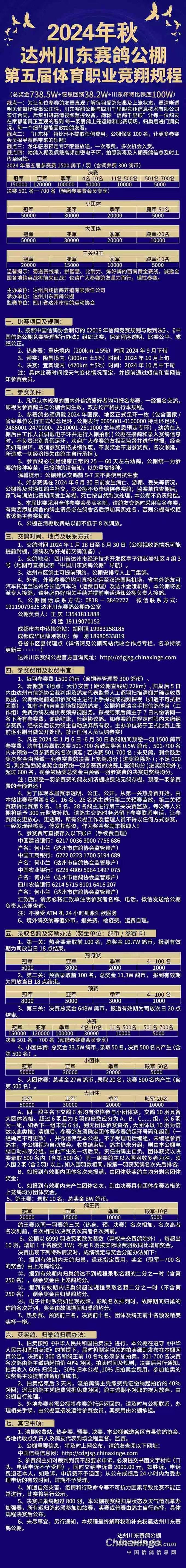 中国川东赛鸽公棚 2024年秋季第五届体育职业竞翔规程(草案)