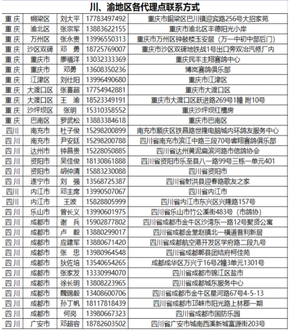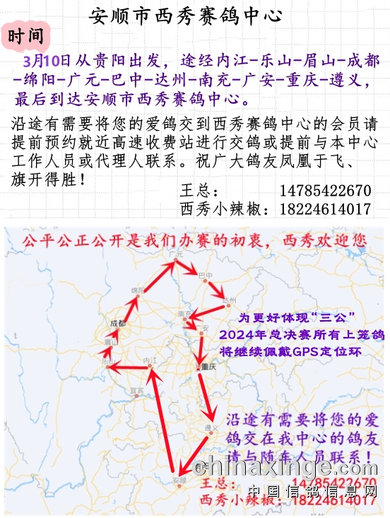 西秀赛鸽:3月27日(川、渝地区接鸽公告)