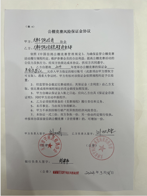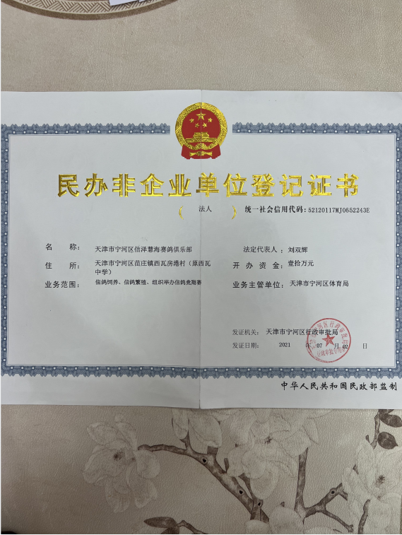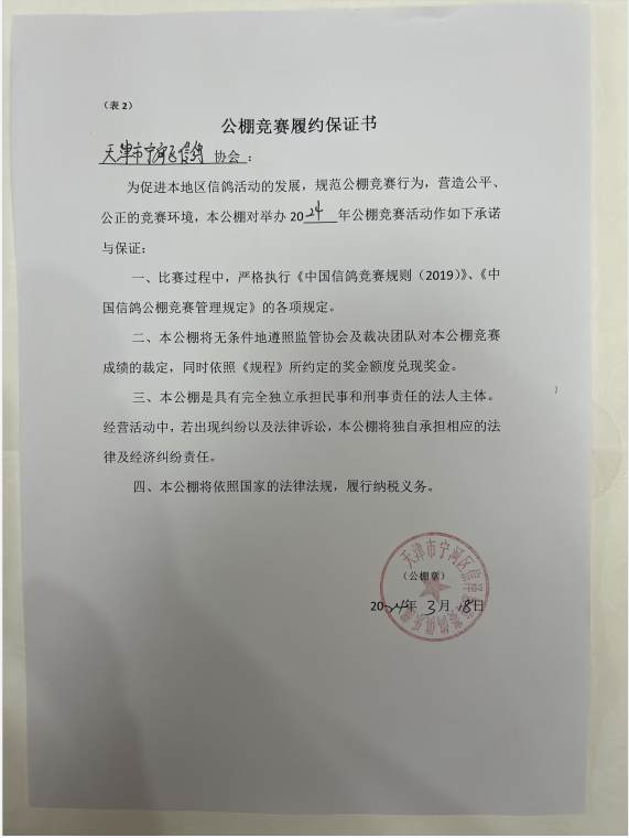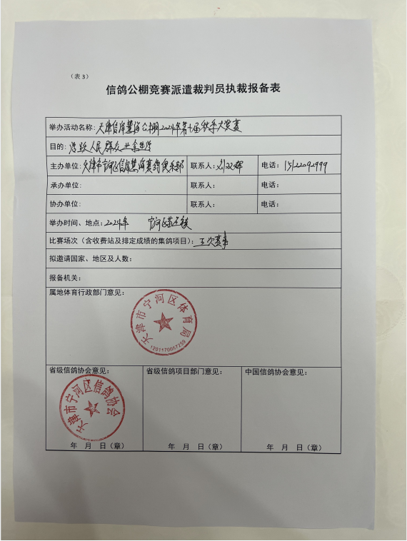天津信泽慧海公棚2024年赛事获宁河体育局及信鸽协会监管公告