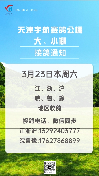 天津宇航赛鸽公棚3月23日前往江、浙、沪、皖、鲁、豫地区接鸽