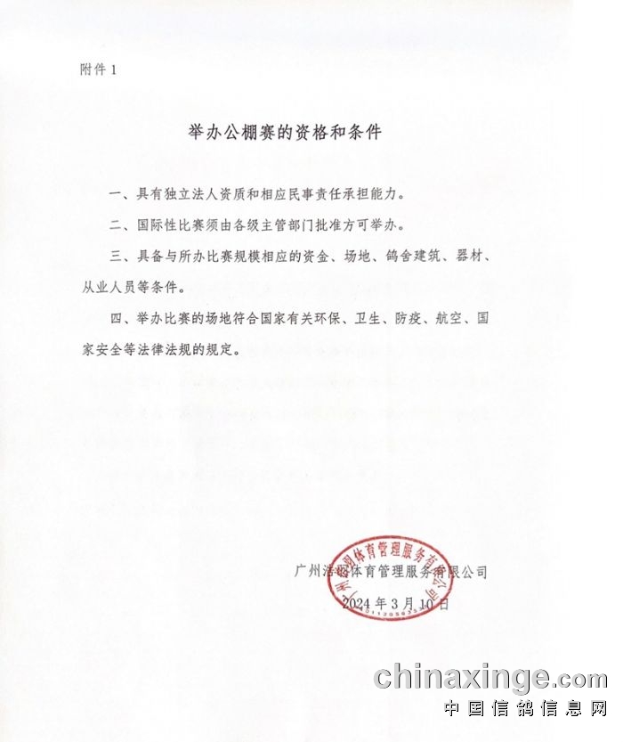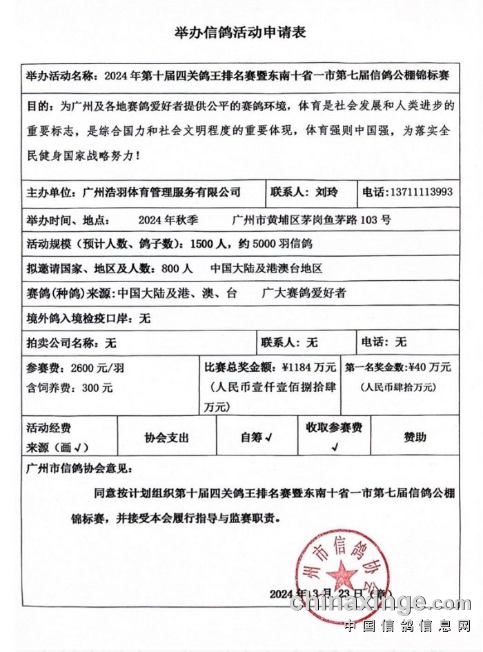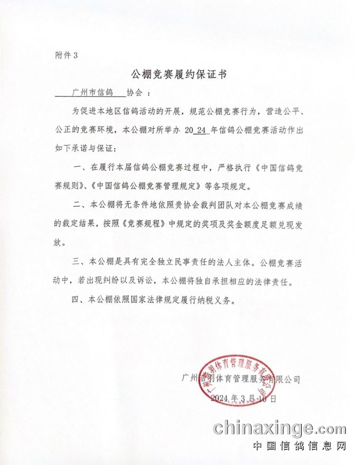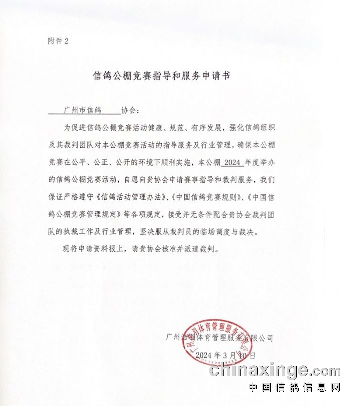 广州浩羽(黄埔)公棚2024年办赛申请书与保证书