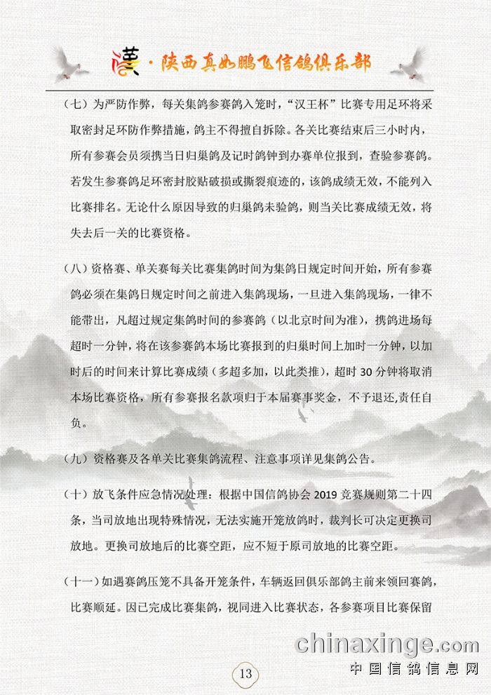 2025年“汉王杯”春季四关鸽王职业赛第四关集鸽通知