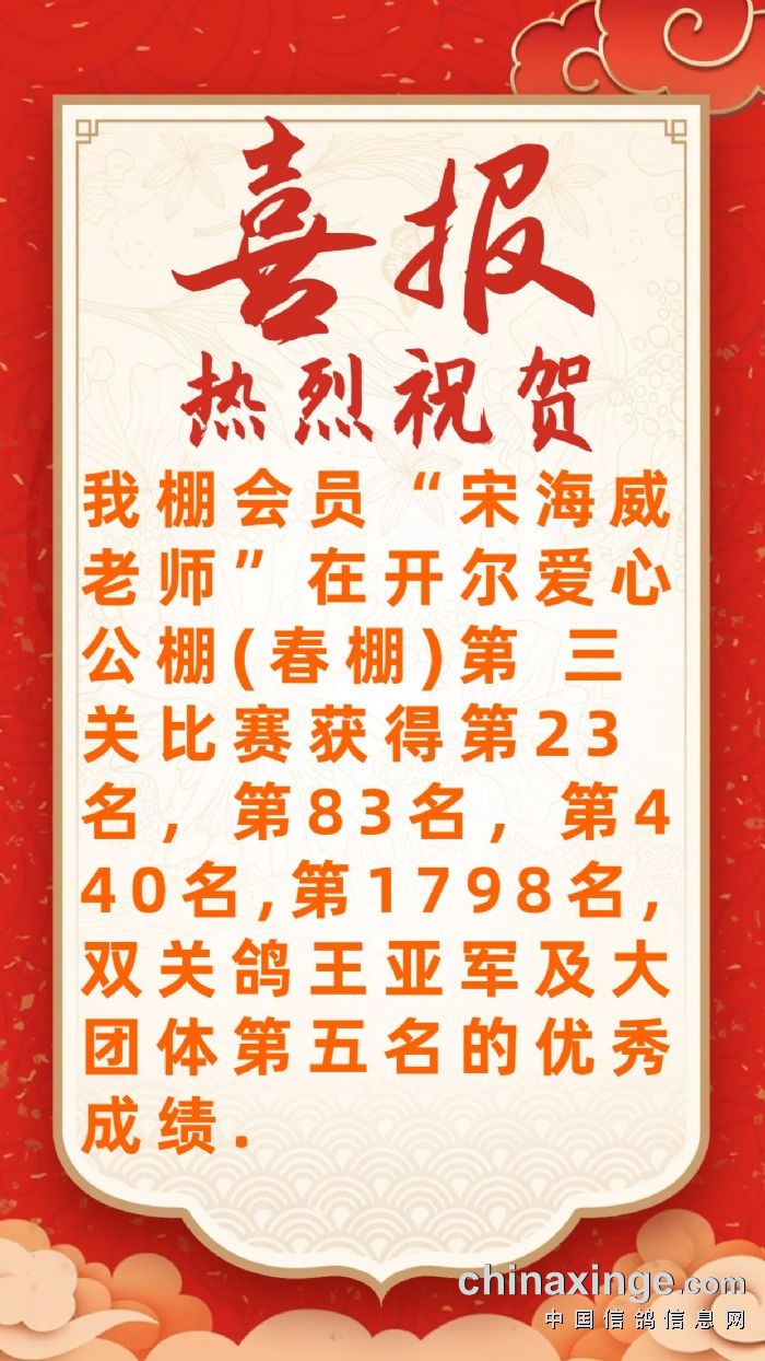 热烈祝贺我棚会员宋海威老师取得优秀成绩
