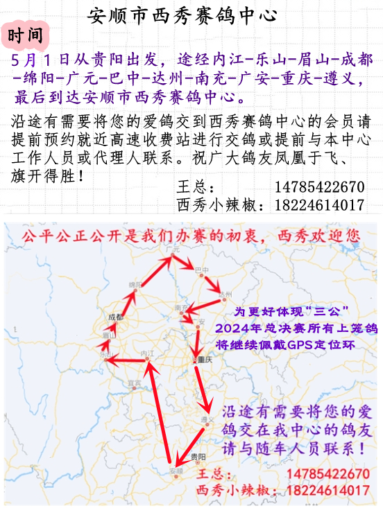西秀赛鸽:3月27日(川、渝地区接鸽公告)