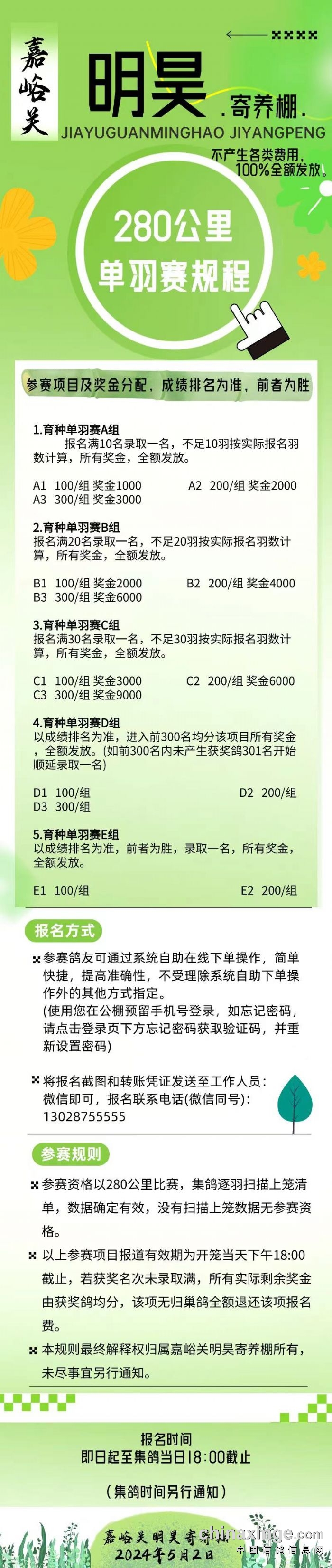 嘉峪关明浩寄养棚2026年春季三关赛章程