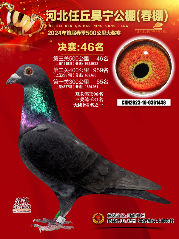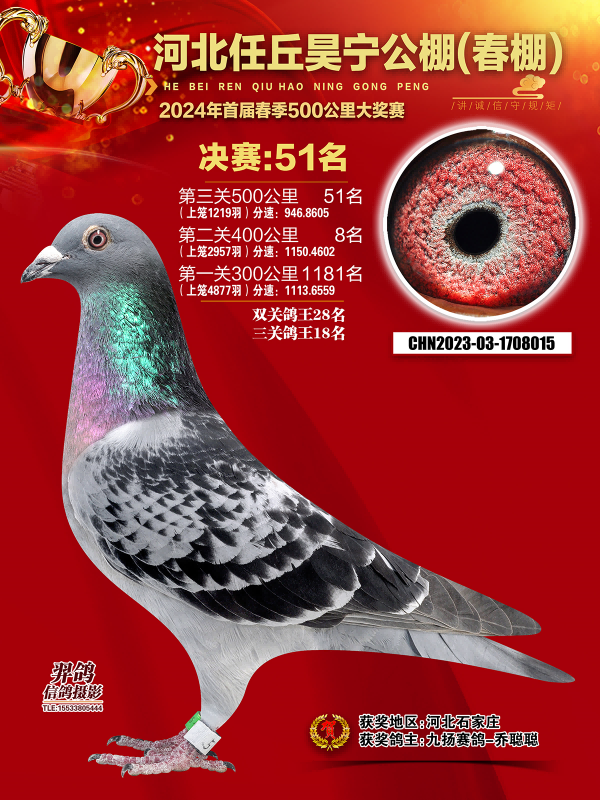 任丘昊宁公棚500公里决赛获奖鸽照片31-45名