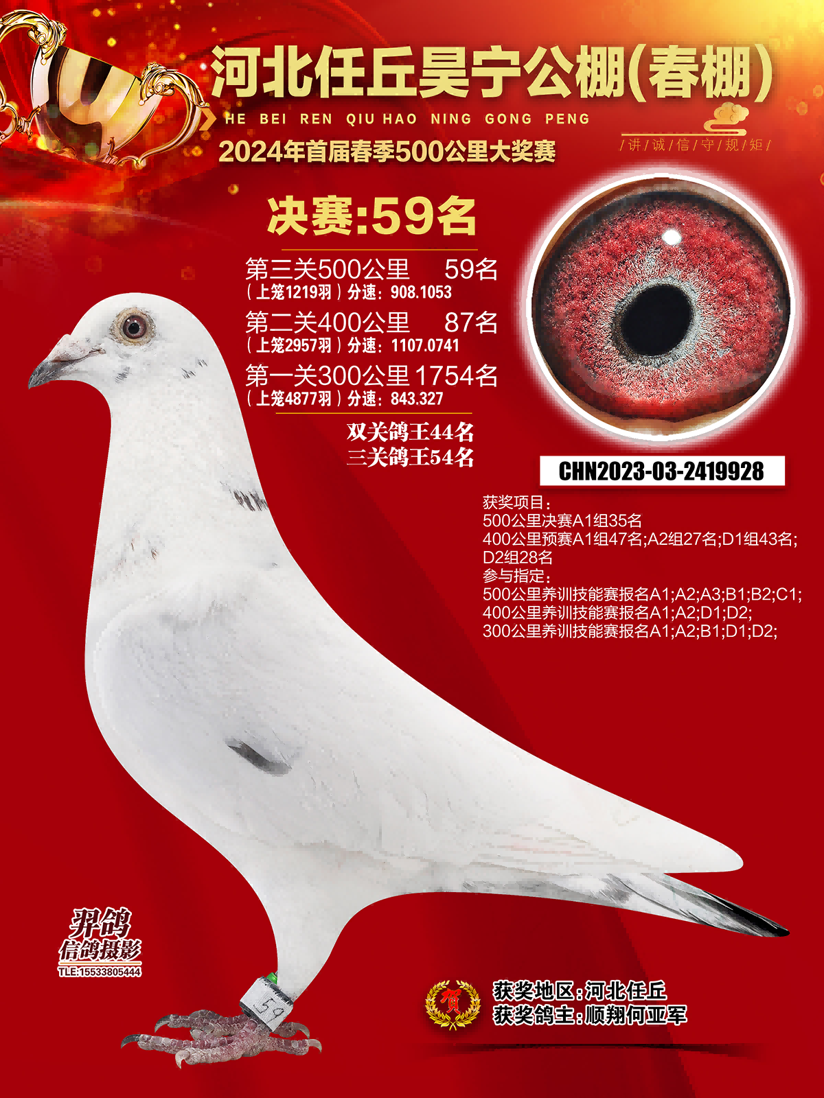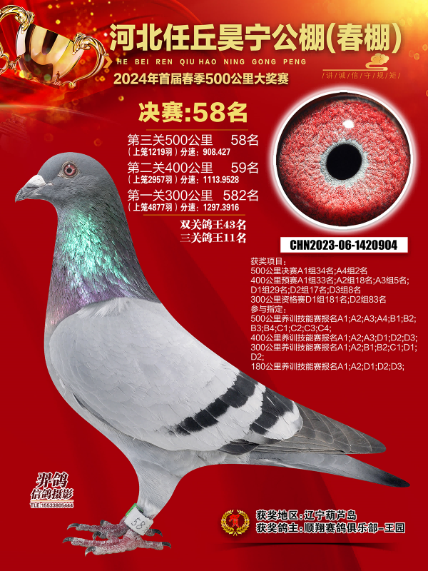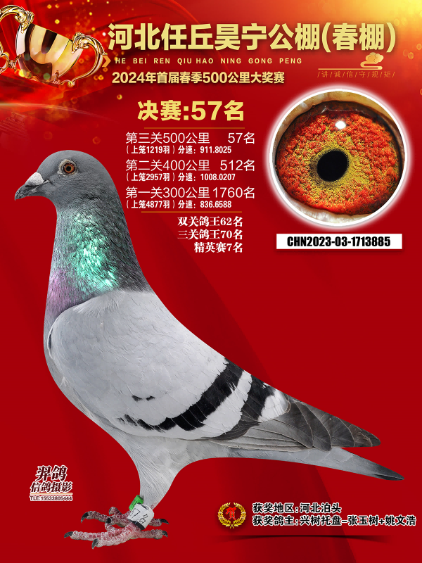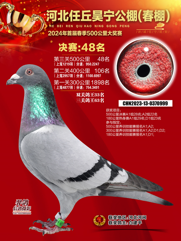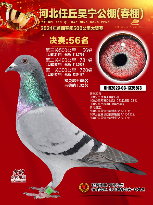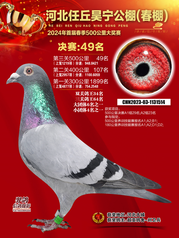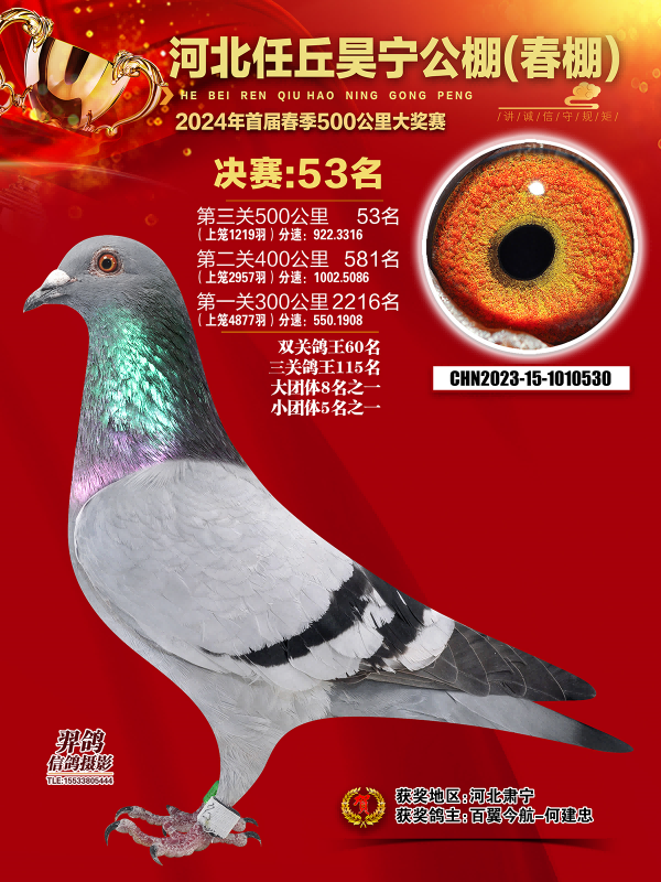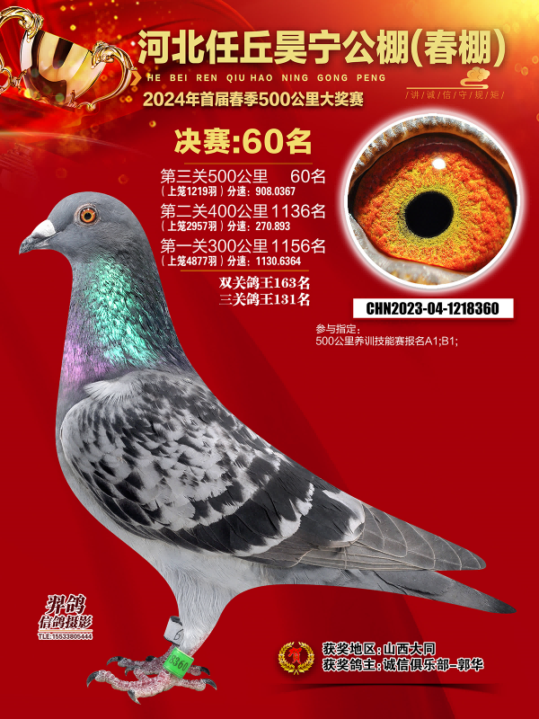 任丘昊宁公棚500公里决赛获奖鸽照片106-120名