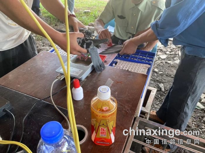 鸽协会委派裁判进行现场执裁!整个过程裁判组对电脑数据清空、加盖暗记章,逐羽扫描装笼,共计集鸽