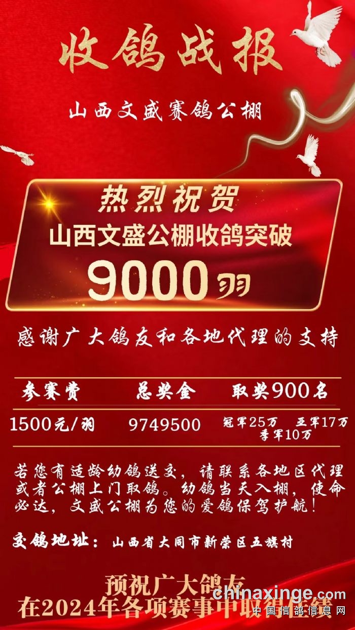山西文盛赛鸽公棚收鸽羽数突破9000羽