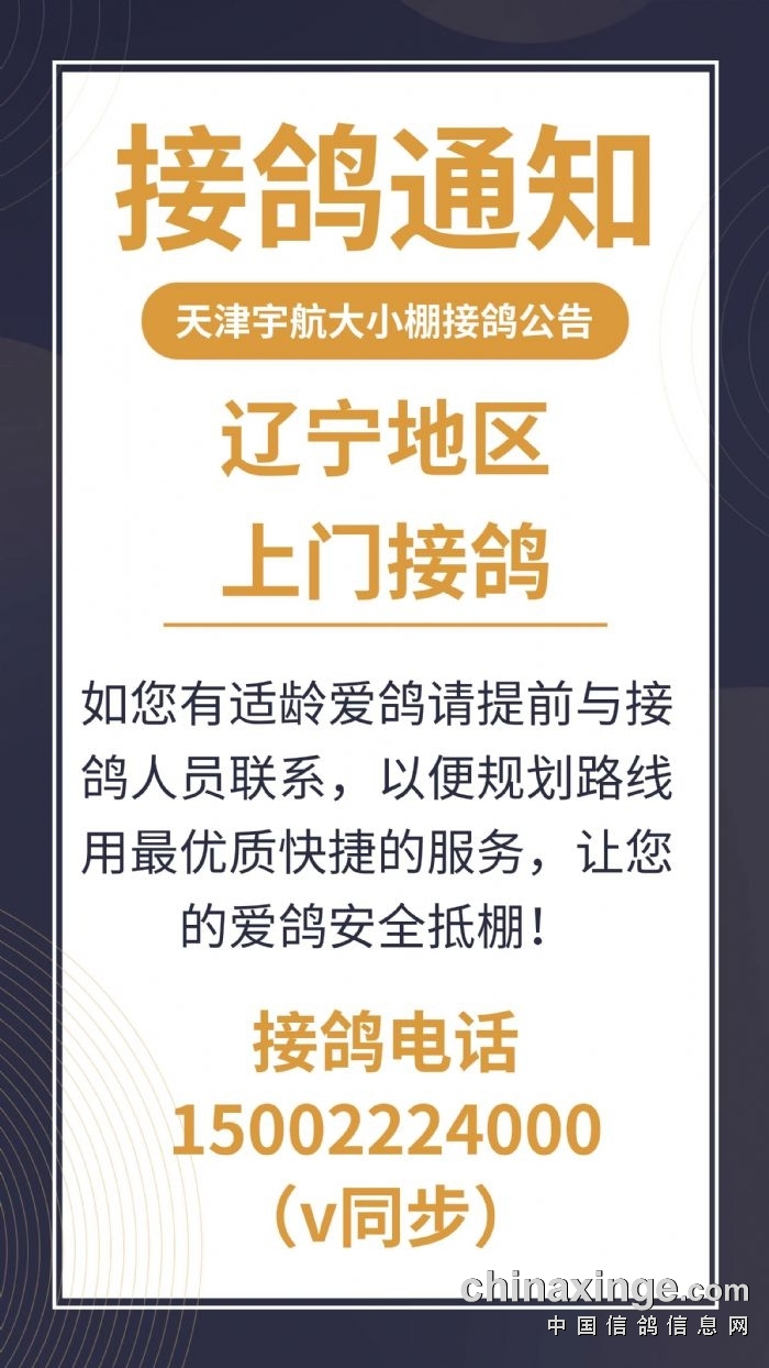 天津宇航赛鸽公棚5月22日-23日辽宁地区接鸽