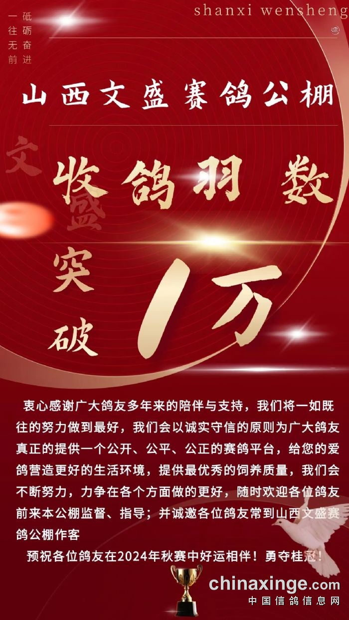 山西文盛赛鸽公棚收鸽羽数突破10000羽