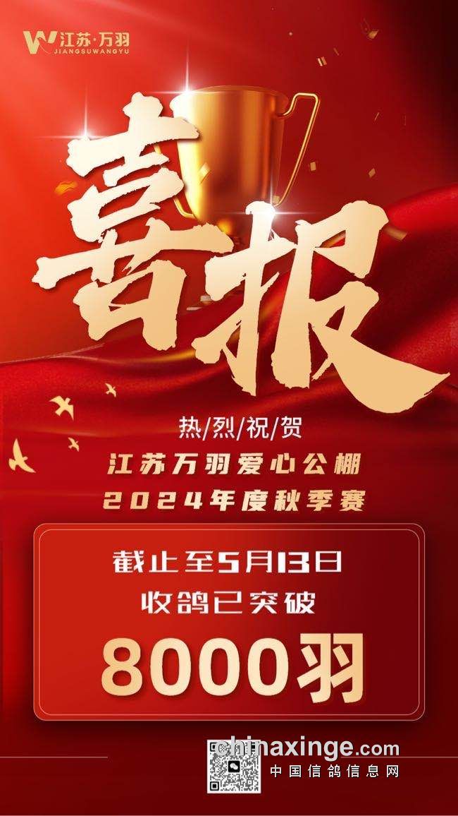 热烈祝贺:江苏万羽爱心公棚收鸽突破8000羽!