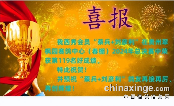 西秀赛鸽:热烈祝贺“蔡兵+刘彦利”