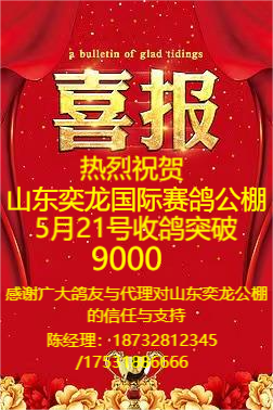 恭贺山东奕龙国际公棚5月21日突破9000羽