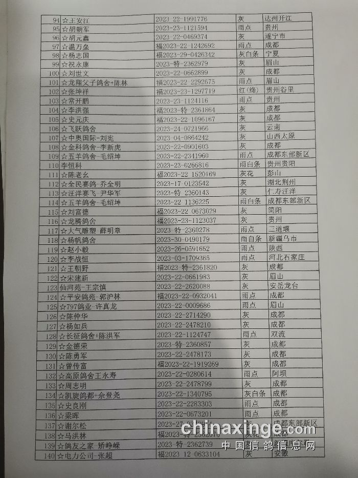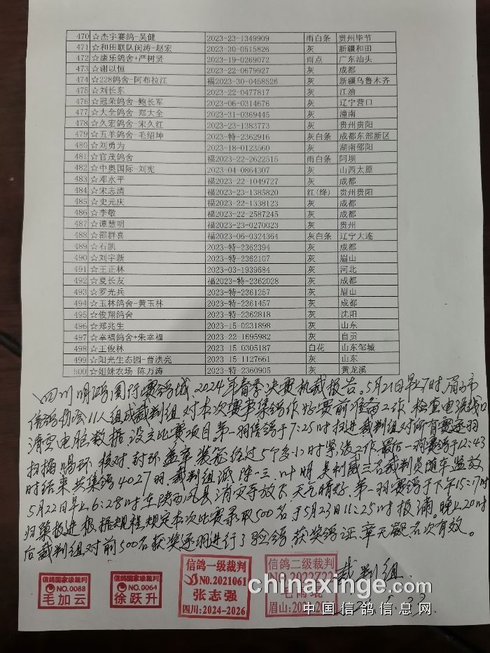 四川明鸿国际赛鸽城决赛获奖鸽验鸽图文