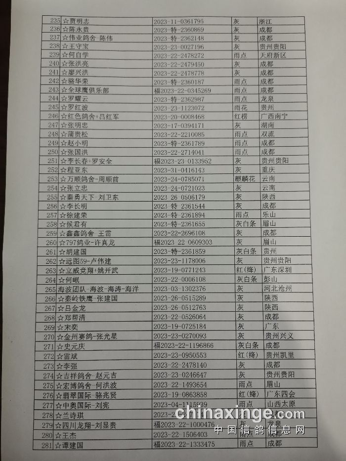 提示:如果此页面是训放清单,要想快速查询鸽环号,请按