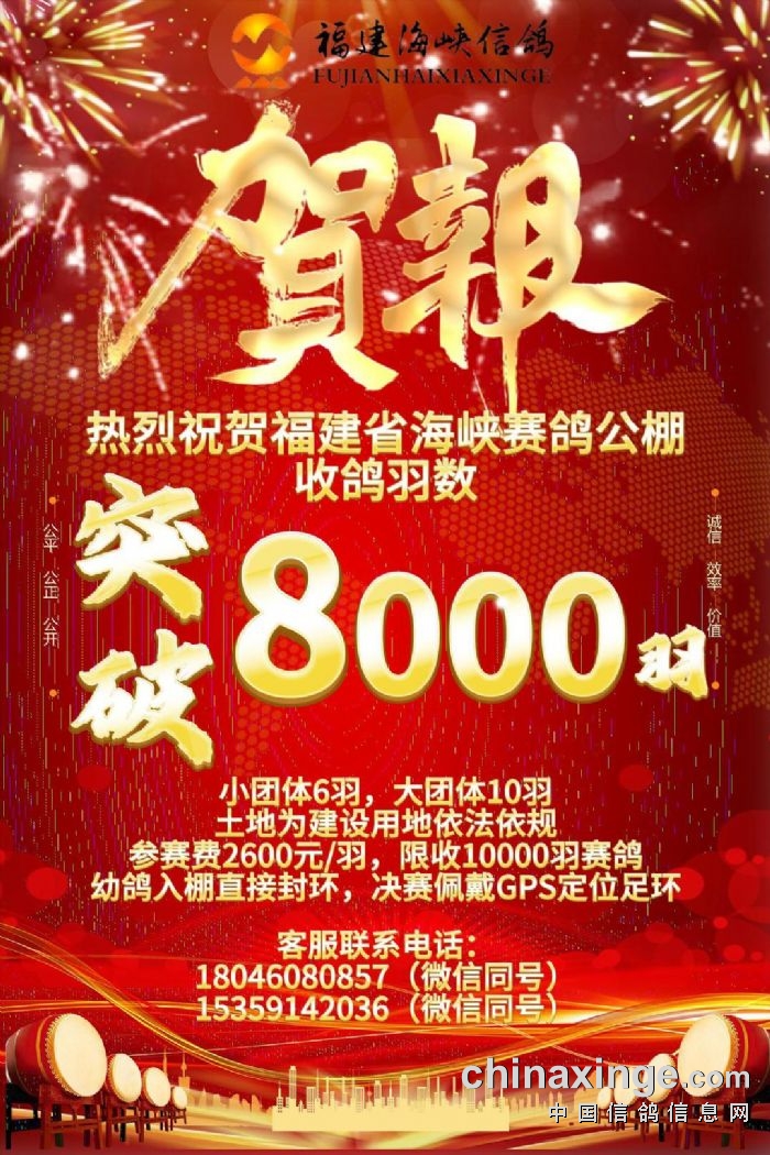 热烈庆贺福建省海峡赛鸽公棚收鸽羽数突破8000羽!