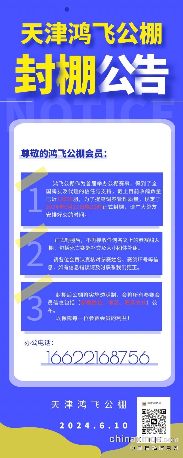 天津鸿飞赛鸽公棚2026年市鸽会监管手续已全部完成