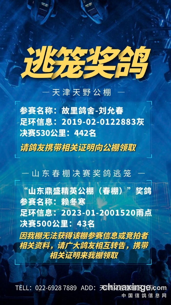 天津天野2025赛事迟归鸽领取通知
