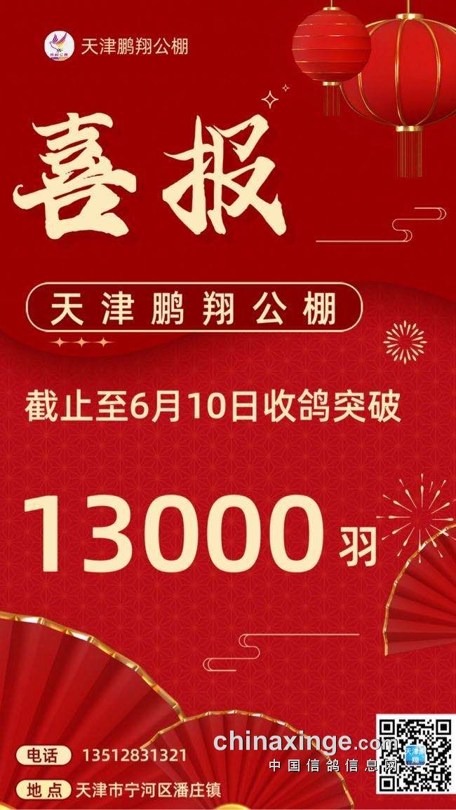 天津鹏翔公棚收鸽羽数突破13000羽!