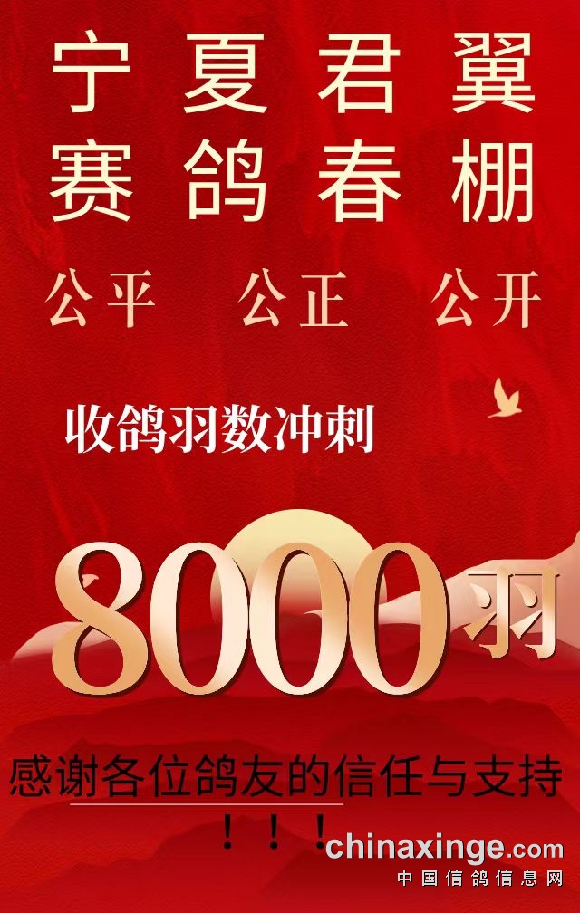 宁夏君翼赛鸽公棚(春棚)收鸽羽数冲刺8000羽