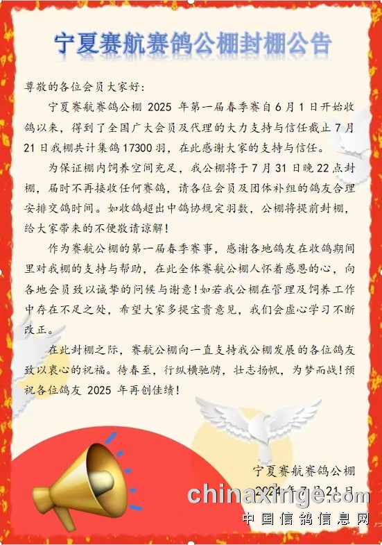 宁夏赛航赛鸽公棚预交参赛费核对通知